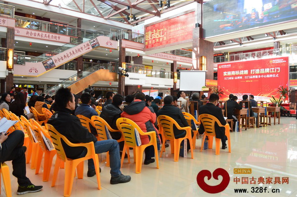 12月17日下午,由广东省江门市新会区人民政府、江门市工商行政管理局联合主办的江门商标·品牌网上线仪式和新会红木家具企业商标·品牌知识讲座在江门市新会古典家具城·博览中心大堂隆重举行。众多领导嘉宾及红木家具企业负责人出席了这次活动。