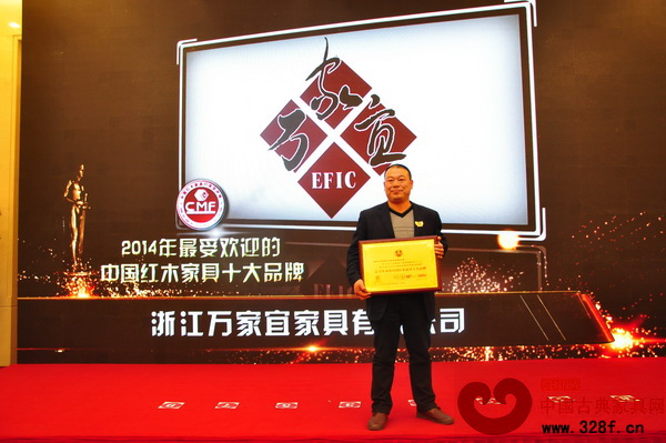 基于此,万家宜在2014年先后荣获了浙江省林业重点龙头企业、浙江省著名商标等荣誉,此次又再次获得“最受欢迎的中国红木家具十大品牌”称号,是政府以及消费者对其的充分肯定和嘉奖,及对其未来发展的高度期望。相信,万家宜一定不负众望、继续前行,走进千家万户。(来源:中国古典家具网 罗杰∕文 徐妃妃∕编辑)