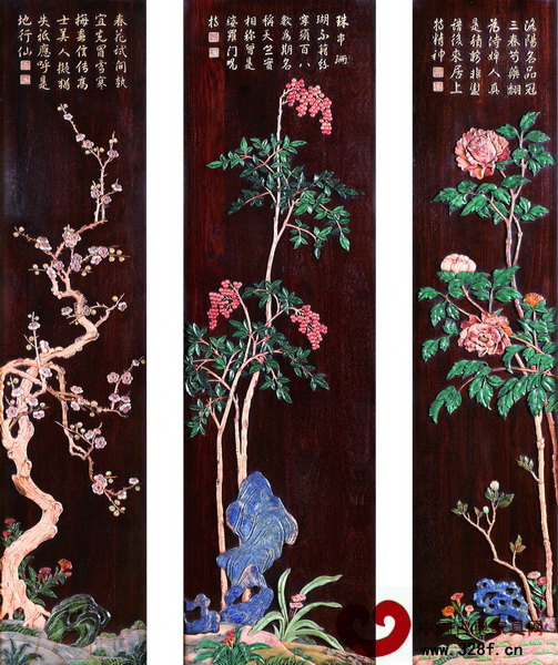 用玉石镶嵌的花卉纹生动流畅,是红木家具常用的“百宝嵌”技艺(区氏臻品供图)