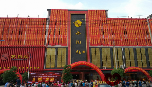 苏阳红六周年庆典暨新品牌发布会活动当天,苏阳红大楼上彩旗飘扬