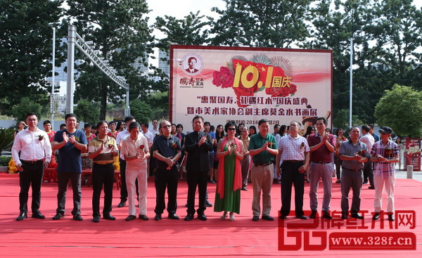 本次国庆盛典于当日,东莞市文联委员、东莞市美术家协会副主席莫金水,中国传统工艺大师、国寿红木董事长陈国寿,国寿红木副董事长陈淦凡、总经理陈卫棠、副总经理王耀佳,书画展特邀嘉宾,消费者共同出席了本次活动。