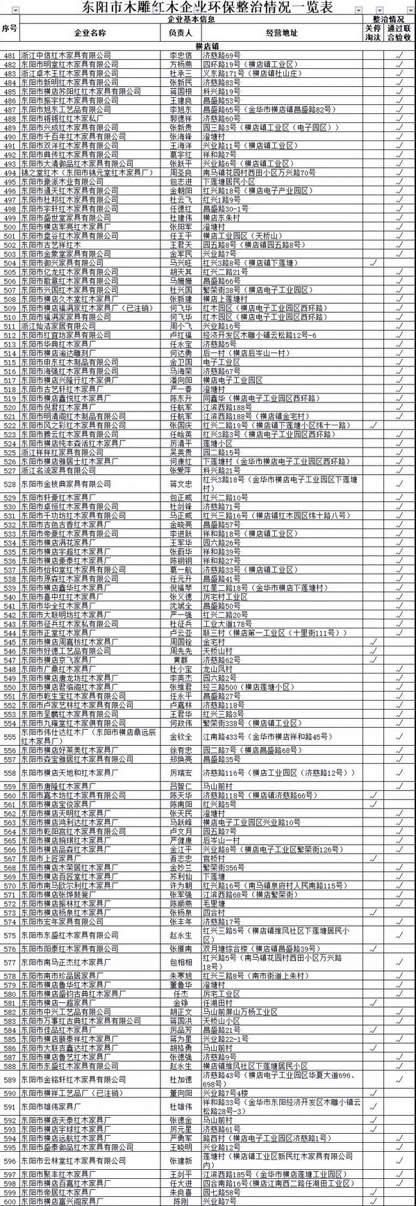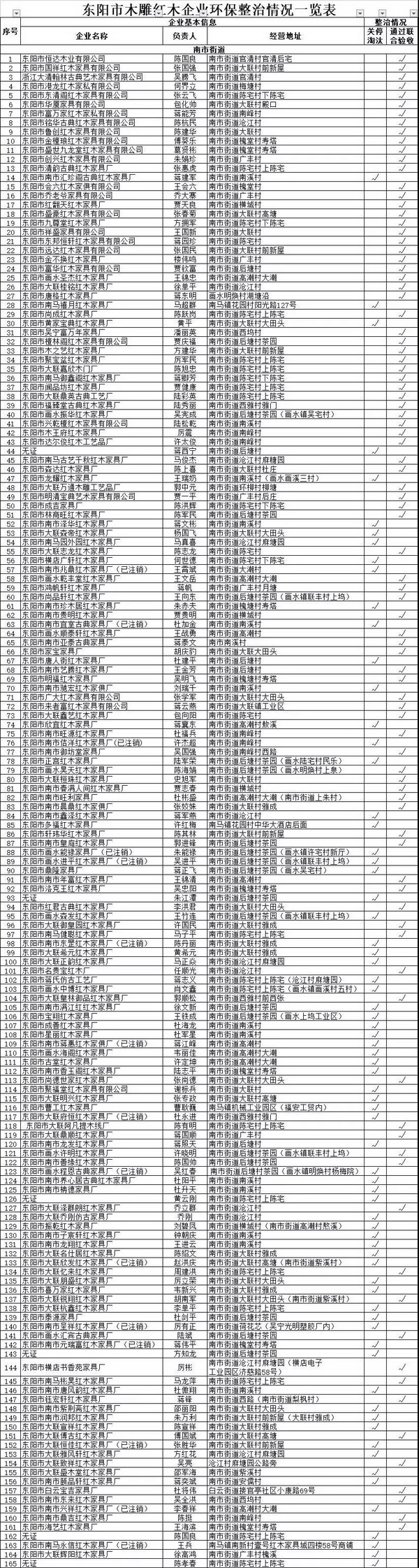 根据《浙江省贯彻落实中央环保督察反馈意见整改方案》的要求,依据《东阳市木雕红木家具行业环保整治实施方案》,东阳市全面开展了木雕红木家具行业环保整治工作。截至2018年8月31日,中央环保督察督办的含喷漆工艺的1392家木雕红木家具企业关停淘汰464家,经整改后通过联合验收928家,近1/3的木雕红木企业被关停淘汰。