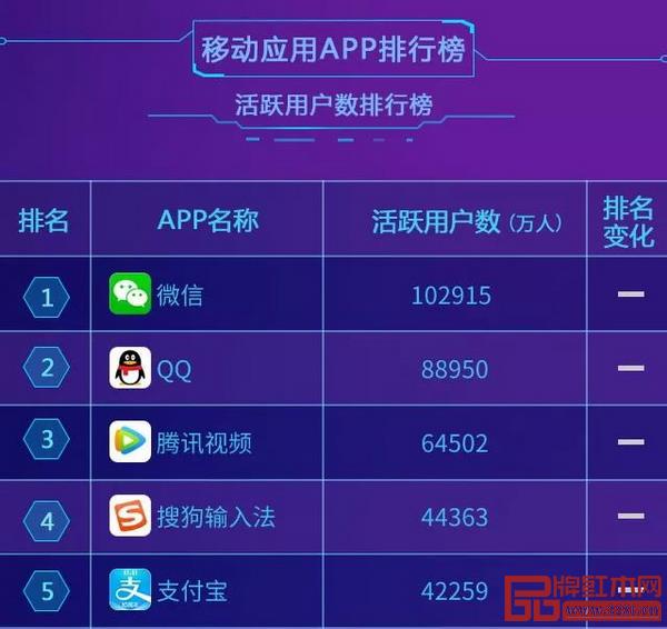 根据艾媒咨询数据显示,2018年11月移动应用APP排行榜中,腾讯微信活跃用户数超10亿人,位居榜首