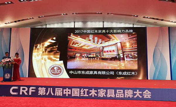 (2)东成红木闪耀“G5金砖”国际舞台,黑酸枝当代中式“文宋”品牌在大家的瞩目下荣耀起航!并在第八届中国红木家具品牌大会上,荣获“中国红木家具十大影响力品牌”,2017中国红木家具十大领军企业家”,“2017中国红木家具传承贡献奖” 三项大奖。