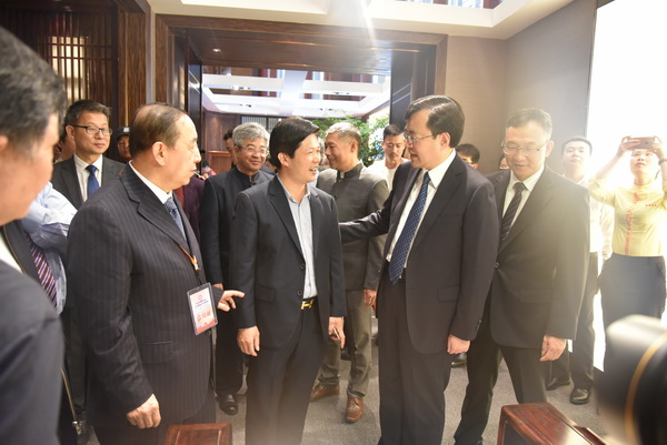 (12)5月19日上午,中国家具协会第六届五次会议在北京隆重举行。会议期间,新当选的中国家具协会理事长徐祥楠亲切接见了张锡复董事长。徐理事长勉励东成红木要锐意创新,不断发展,主动承担行业责任,为行业的发展起到引领和示范的作用。