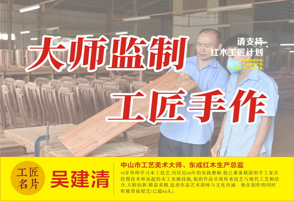 (24)大师监制,工匠手作——是红木家具的价值所在,东成红木在国庆期间,向社会积极倡导“拒绝粗制滥造,保护知识产权,尊重工匠,重塑价值”的“红木工匠计划”,并得到广大红木爱好者的广泛的支持与认同。