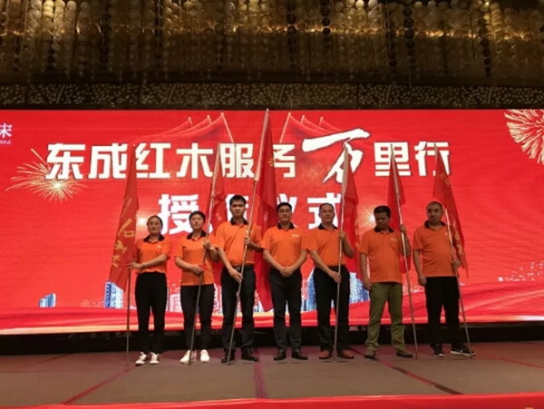 (6)3月13日,以“同心同行 聚力共赢”为主题的东成红木2018经销商年会暨“文宋”新品发布会在广东中山成功召开,会上对各位经销商在过去一年中取得的优秀业绩和进步进行了隆重表彰。相信这次大会,对公司上下都是一种更好的鞭策与鼓舞,同时,也让各位家人收获到了意想不到的感动和温暖。