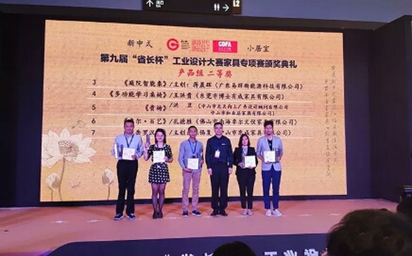 (28)11月30日,在第九届“省长杯”工业设计大赛中 ,东成文宋产品凭借强劲的设计实力,从数百件作品中脱颖而出荣获家具专项赛产品组的五项大奖。(望岳罗汉床获二等奖,知境休闲椅和文雅休闲三件套获三等奖,和风茶室和知境茶台获优胜奖)。
