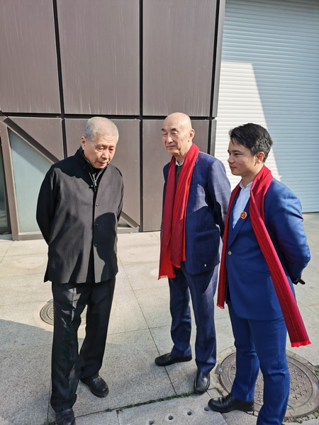 深圳泰和园董事长邵湘文(中)与央视《百家讲坛》主讲人、文化学者、观复博物馆创始人马未都(左)交流