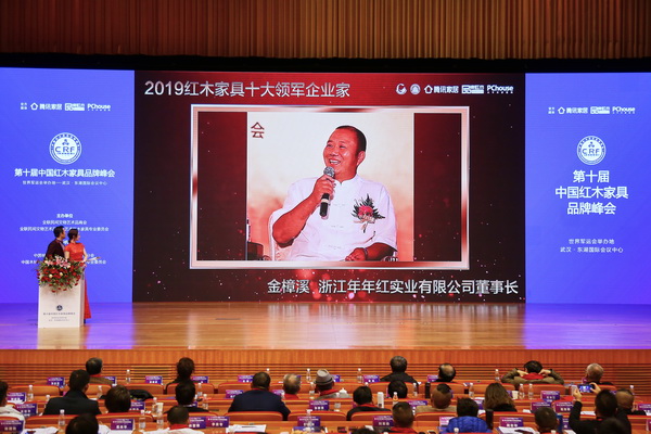 12月27日,第十届中国红木家具品牌峰会(以下简称红木品牌峰会)在世界军运会举办地—武汉·东湖国际会议中心盛大举行。中央电视台主持人赵保乐、湖北卫视主持人刘熙烨联袂担任本次峰会特邀主持。浙江年年红家具(国际)集团(以下简称年年红)总裁金效明受邀出席峰会,与现场的政府领导、红木行业专家、产区龙头企业领袖、主流媒体代表等数百人共襄年度盛典。