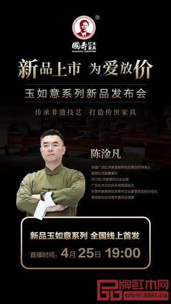 为了进一步让经销商品鉴国寿红木新系列,4月25日19:00,国寿红木在线上进行玉如意系列内部新品发布会,非遗第四代传承人、国寿红木副董事长陈淦凡线上品鉴新品魅力。