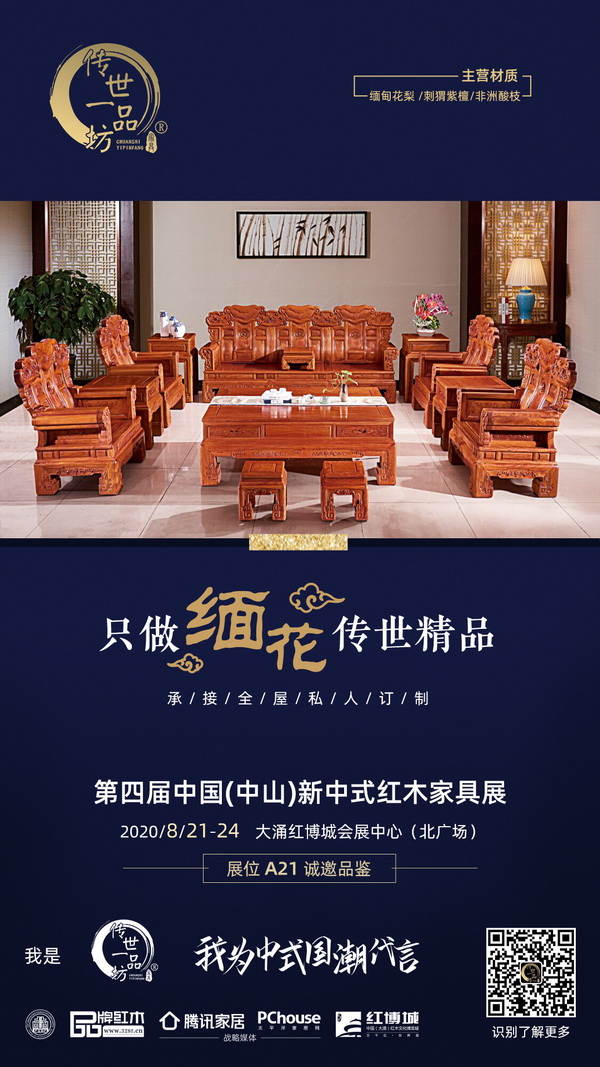 8月21日-24日,主题为“国潮中式优选生活”的第四届中国(中山)新中式红木家具展,将在广东省中山市大涌镇中国(大涌)红木文化博览城会展中心举行。