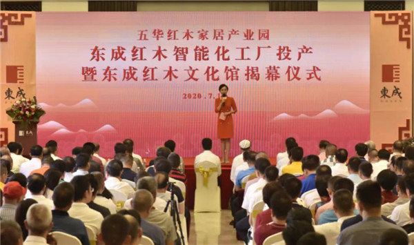 7月11日,“五华红木家居产业园东成红木智能化工厂投产暨东成红木文化馆揭幕仪式”在广东省梅州市五华红木家居产业园隆重举行。庆典活动嘉宾云集、高朋满座。中国林业产业联合会特地为活动发来贺词,表示祝贺。中国家具协会理事长徐祥楠也通过视频讲话表达了对东成红木智能化工厂和红木文化馆的期待与祝福。梅州市、五华县、中山市各级领导、广东省家具协会领导、专家教授和合作企业代表及各界人士代表莅临活动现场,共同见证东成红木的发展成就。