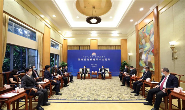 3、2021年1月8日,澳门特区行政长官贺一诚率领澳门特区政府代表团到访中山。活动现场,澳门特区行政长官与中山市委书记坐享东成红木香茗会客椅并赞赏有加。