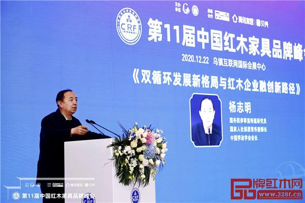 国务院参事室特邀研究员,国家人社部原党组副书记、副部长,中国劳动学会会长杨志明带来《双循环发展新格局与红木企业融创新路径》主题分享