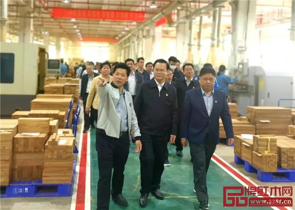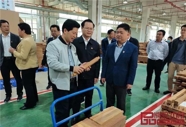 丰顺县县委书记曾永祥带领考察团一行,领略东成红木精益求精的“工匠精神”