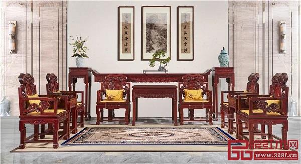 巧夺天工红木《灵芝中堂配宝座》