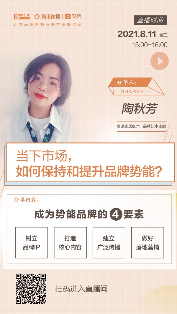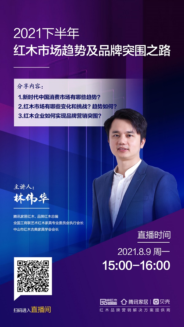 8月9日起,品牌红木直播间正式开播,腾讯家居红木、品牌红木总编林伟华携直播团队每天在直播间,与网友交流探索红木发展与品牌成长。识别海报中的二维码,可以观看直播回放。