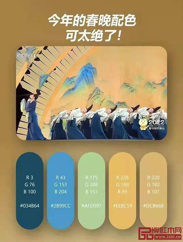 但由于时间限制,春晚只展示了其中一段群舞,将青绿色抽象为女性人物形象,通过舞者们的优雅舞姿,表达群山层峦叠嶂的概念。