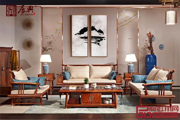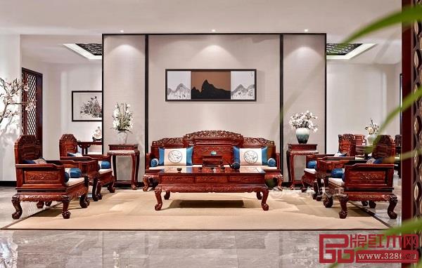 色彩作为中国风华的一种表达,寄托了底蕴绵长的历史和文化。除了在家具装饰、软装,甚至是屏风、花瓶摆件、植物等融入青绿色,一些红木家具品牌还从《千里江山图》及宋代雅风提炼品牌和产品内涵,展现独特的中国生活韵味。