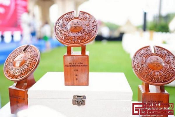 2022全球北大校友高尔夫友谊赛上的团体赛奖杯由中国传统工艺大师、中国红木艺术大师,卓木王董事长杜承三先生亲自参与设计,奖杯材质选用“帝王之木”——印度紫檀。印度紫檀有“木界名流,华丽贵族”的美誉,是世界顶级名贵木材的代表。奖杯设计独特,外观精美,将“天圆地方”哲学纳入其中,寓意美好。奖杯上方灵感来自于高尔夫的圆形造型,四周加入了中国传统的祥云元素,寓意和谐吉祥。奖杯底座设计成四平八稳的鼎式造型,给人大气沉稳,智慧从容的感觉,也代表汇集天下精英,昌盛繁荣。