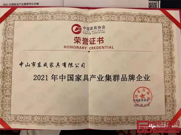 东成红木荣获“2021年中国家具行业领军企业”称号及“2021年中国家具产业集群品牌企业”称号。
