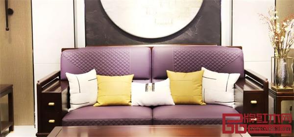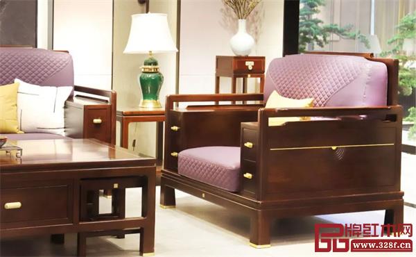 【君道2号沙发】沿用居境系列主打的栗子色为基调,透过刺猬紫檀天然的木材纹理,将空间的优雅、稳重之感尽数烘托。