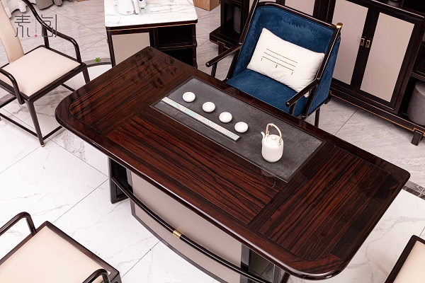 素创家居部分产品采用条纹乌木制作而成,木质重硬,手感光滑细腻,肌理纹路美观大方,间有浅黄或浅红色肌理相间于中,沉稳又灵动,磅礴而大气,尽显“东方神木”之美感!