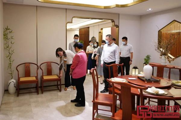2022年10月10日,省文化和旅游厅原一级巡视员陈杭、厚街镇党委书记黎寿康、厚街镇委委员陈彦、市文广旅体局原四级调研员卢爱禅、厚街镇文化服务中心主任安娜、市文化馆非遗保护部副主任黄凤琼等一行莅临国寿红木艺术馆调研非遗项目工作。