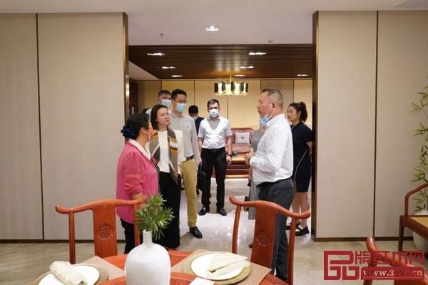 国寿红木副董事长陈淦凡、艺术馆馆长陈映雄陪同调研团一行先到非遗技艺展示主题馆参观,视察了广式红木家具制作技艺一系列展示和介绍,省文旅厅陈杭提到,“加强非遗文化保护,既要守正传统,更要推陈出新。只有不断创新工作方法和传承方式,非遗文化才能够得到更好的保护,进而在逆境中生存、困境中发展,在新时代闪耀出璀璨的光芒。”