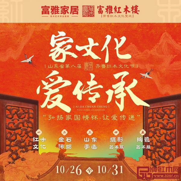 [摘要]山东省第八届齐鲁红木文化节以“家文化·爱传承 弘扬家国情怀--让爱传递”为主题,将于2022年10月26日,在山东济南富雅家居盛大启幕。