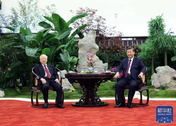 2017年1月阮富仲访华时,习近平总书记就和他进行过“冬日茶叙”,那一刻成了被广为传颂的中国特色大国外交的经典时刻之一。那次茶叙上,习近平总书记还妙解“茶”字,他说茶字拆开就是“人在草木间”,传递出浓厚的中华文化精神。