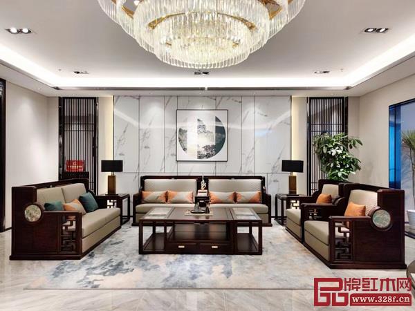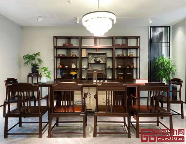 廖柱平:目前博大红木主要推广两个系列,黑紫檀和东南亚黑酸枝的国潮新中式系列,这两个系列我们的产品线都比较丰富,从新古典到新中式,甚至到一些时尚一点的中式产品,我们都有生产和开发、研发,在市场上面的布局也还比较完整。
