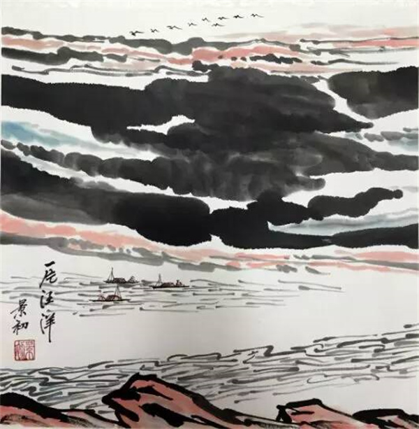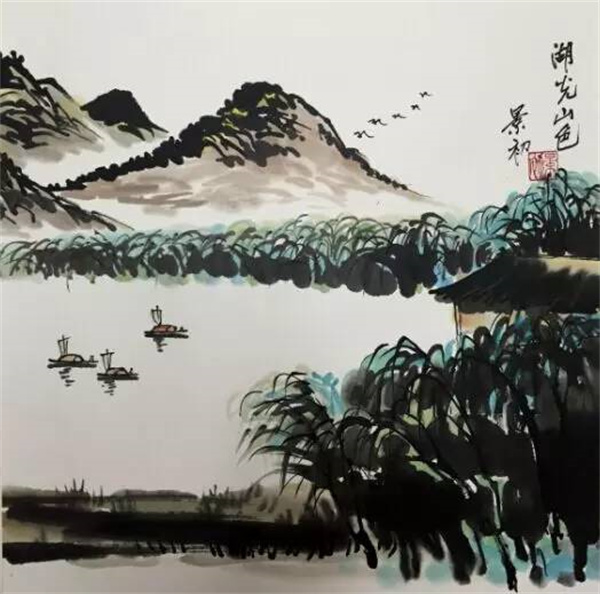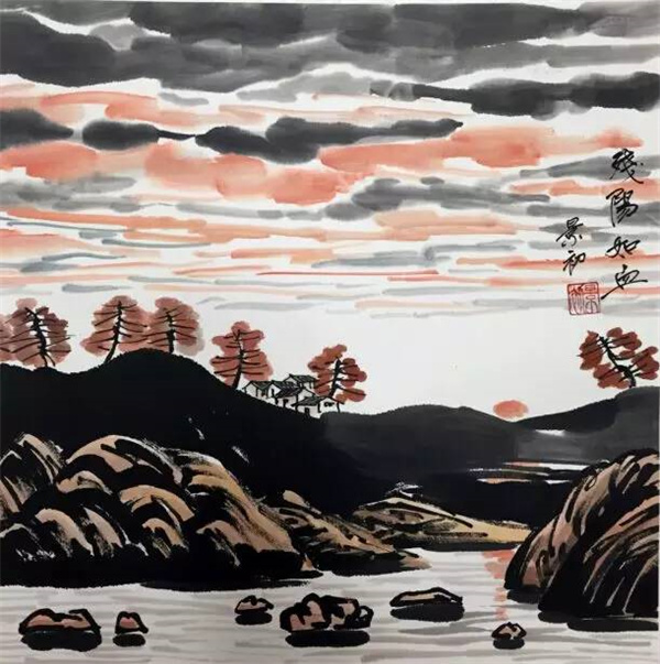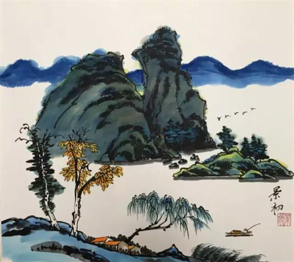 观胡景初老师的书画,你会发现在其充满着浓郁文人气息的山水、花鸟画中,意笔草草,不经意中所流露出的对于灵秀山川的全新解读,展现了一个具有传统艺术涵养的文人所具有的古典情怀。同时观其大胆的对比用色,也不乏现代学人之新意。