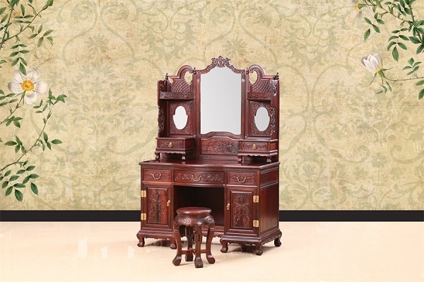 在如今的家居卧室中添置一套红木梳妆台,不仅有着返璞归真的气息,一款美轮美奂的梳妆台,也会让人身心两悦,还能提升居室的情调,加深女主人对美好生活的感悟。