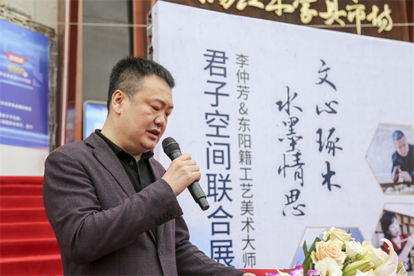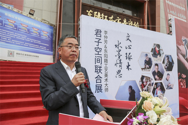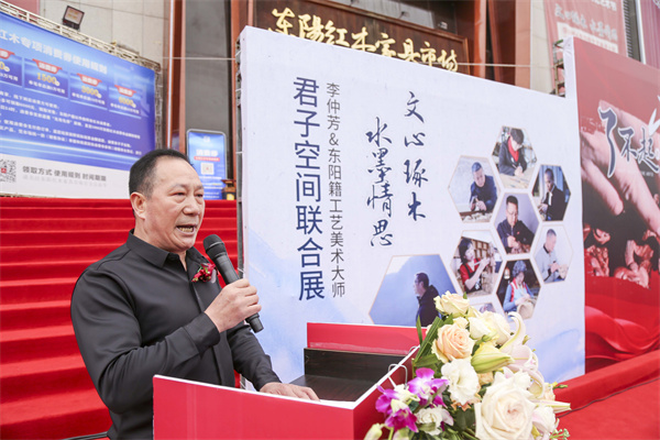 东阳市政协党组副书记、副主席黄阳明高度肯定此次活动,并在致辞指出,要以文化艺术、非遗技艺为引领,赋于家具、生产企业、市场以文化灵魂,进而推动红木家具产业高质量发展,提升东阳红木家具的艺术品质、知名度和美誉度,为东阳红木家具商贸业插上文化的翅膀。