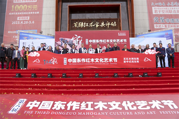 4月28日上午,“了不起的守艺——第六届中国东作红木文化艺术节”在东阳红木家具市场(东阳世贸大道599号)北大门盛大启幕。
