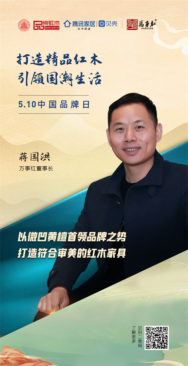 正值5.10中国品牌日之际,品牌红木&腾讯家居|贝壳,与全联民间文物艺术品商会艺术红木家具专业委员会联合优选红木品牌为国货红木发声,致敬中国品牌日。同时,携手品牌大咖向广大业界人士,发起行业寄语活动,挖掘红木企业大国智造力量,点亮红木行业国货之光。