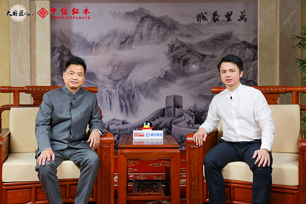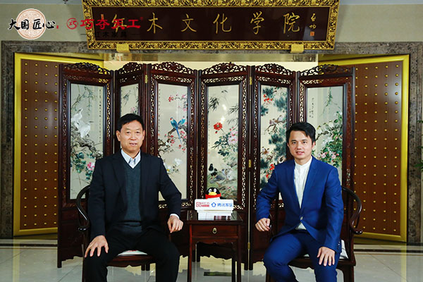 浙江省工艺美术大师、中信红木董事长李忠信(左)、全联艺术红木家具专业委员会执行会长、品牌红木创始人、CEO林伟华(右)