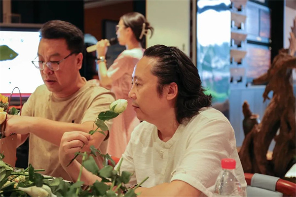 崔老师的分享意犹未尽,由花艺师主导的花漾之旅,便在《东方花艺历史及演变》的专业讲解中启程了。在花艺师的指导下,大家构思创作,沉浸式体验花艺之美,用心去感知生活的美好。一花一叶,偷得半日雅闲。让东方美学意识在花艺构思之中盛开绽放,唤醒每个人骨子里的东方人文情怀,在体验中让内心回归平和宁静。在大家的巧思妙作之下,一件件独具匠心的插花艺术作品跃然眼前。