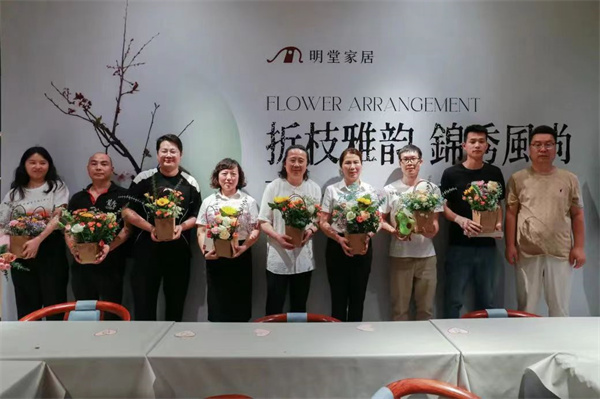 为传播中式生活美学,增强品牌文化体验,明堂家居在合院中厅开展了“折枝雅韵·锦绣风尚”花艺体验活动。众多员工和客户代表,以花艺治愈自己,以花礼感恩他人,度过了唯美愉快的一个下午。