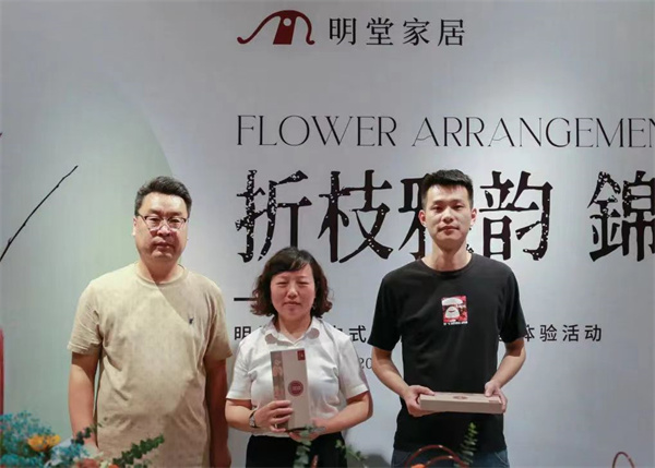 活动现场,由崔老师领衔,明堂家居文化顾问谭向东、明堂家居品牌总监蒋斌组成的评审团,对此次花艺活动作品进行现场评审,根据花艺造型、搭配、色彩、创作灵感等多维度评判标准,对现场的插花作品进行统一评审与打分,最终角逐出6大获奖作品,并为之颁发精心准备的奖品。