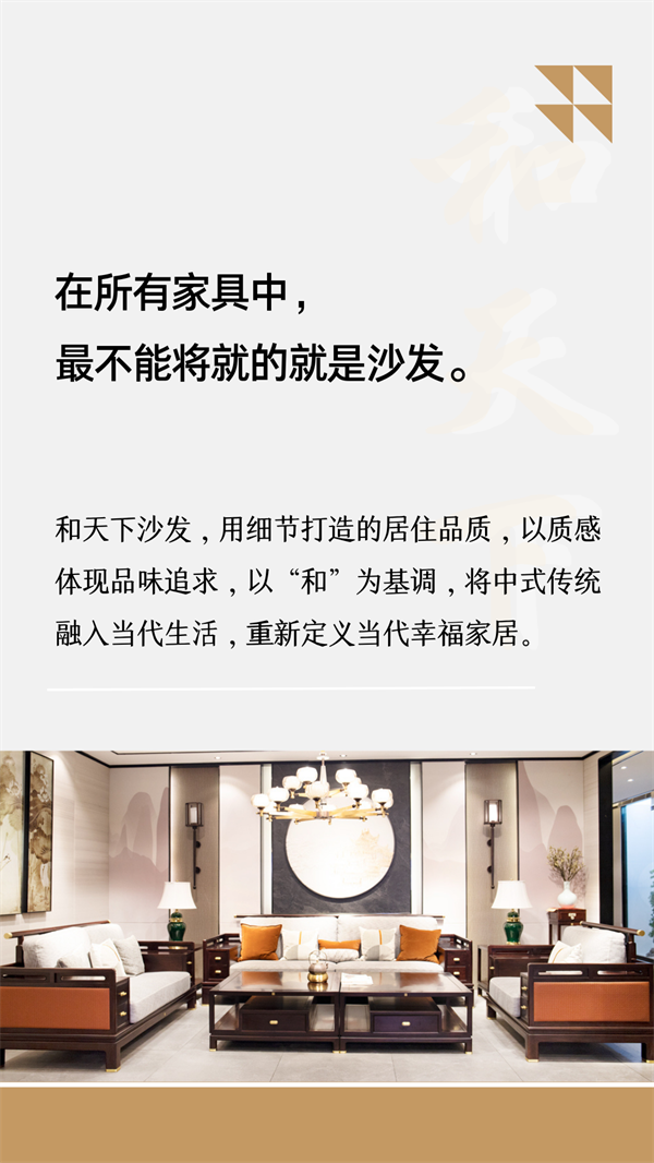 [摘要]和天下沙发,用细节打造的居住品质,以质感体现品味追求,以“和”为基调,将中式传统融入当代生活,重新定义当代幸福家居。