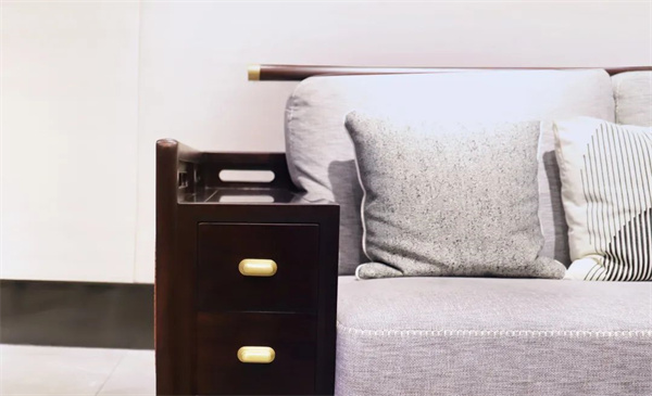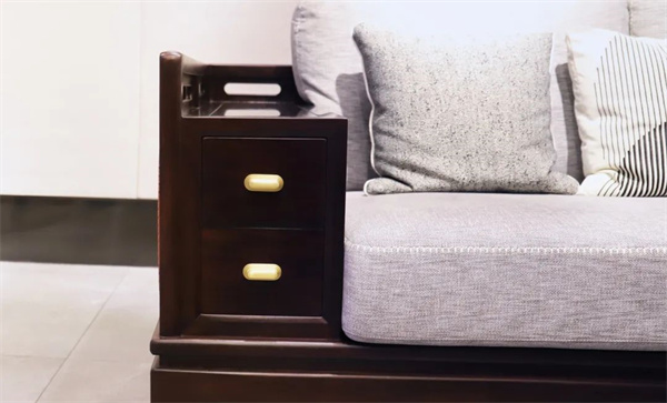 工艺细节:沙发边角打磨圆滑,线条通顺流畅,给人温润顺滑的触感体验。