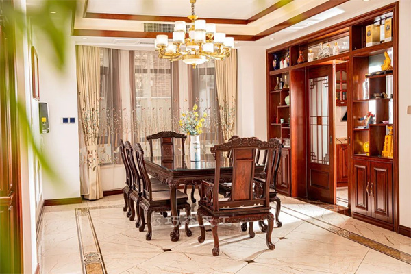 本案以古韵的中式风格装修,以经典流传的中式红木质感,打造出一种令人迷醉的古香古色气息,散发出独特的中式味道。