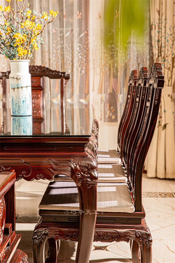 细品这些清秀雅致、柔婉秀丽的红木家具,抚摸着那些雕刻精美的花纹、感受红木家具细腻温润的触感,静默地记录一段时光,述说那些温情的关于家的故事。