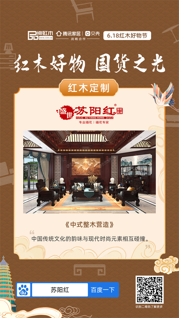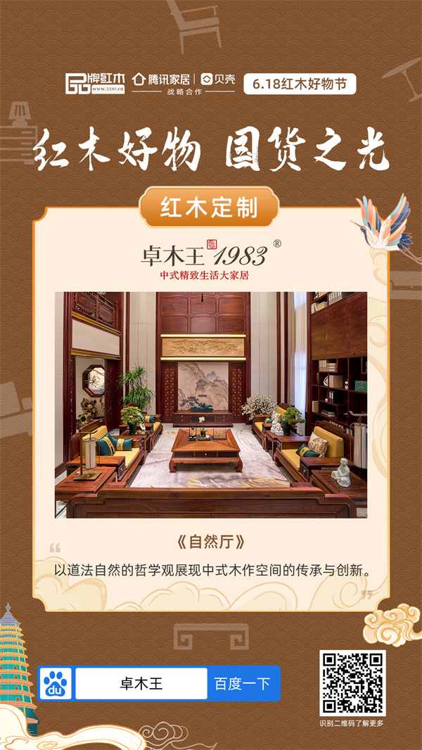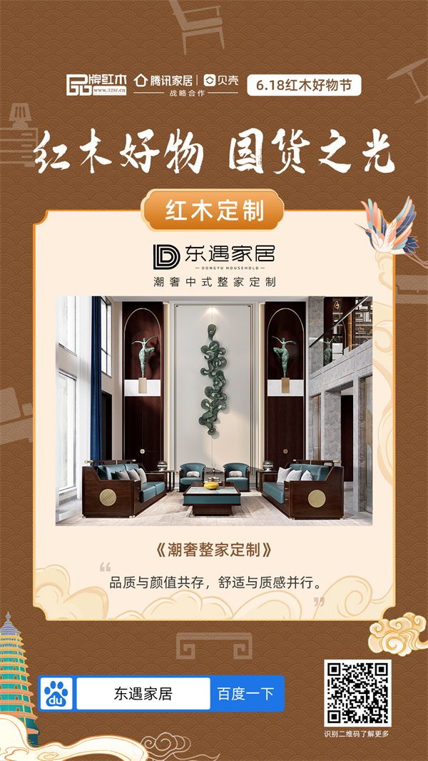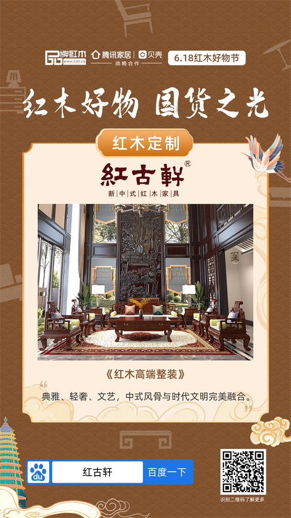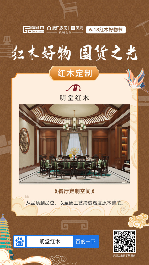 这次,品牌红木与腾讯家居|贝壳强强联手,以“红木好物 国货之光”为主题,共同打造6.18经典红木家具消费指南,为你精选红木定制空间。