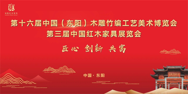 6月30日,由中国家具协会、中国工艺美术协会、中国林业产业联合会、中国林产工业协会、东阳市人民政府联合主办的第十六届中国(东阳)木雕竹编工艺美术博览会暨第三届中国红木家具展览会在东阳中国木雕城隆重开幕。