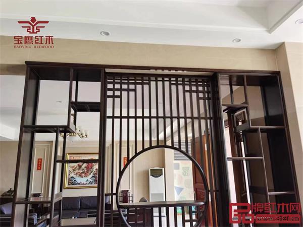 大面积的木质屏风结构,颇具古风,重现传统家居建设,更显红木风采。
