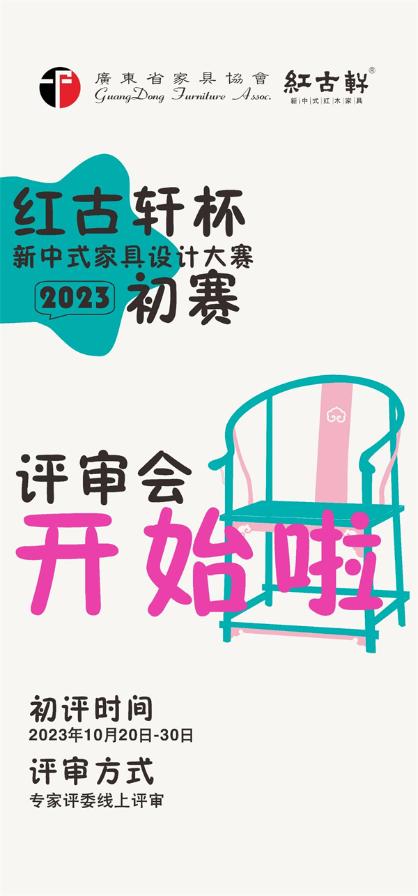 由广东省家具协会主办,红古轩承办的,第十五届红古轩杯新中式家具设计大赛初赛评审正式开始啦!